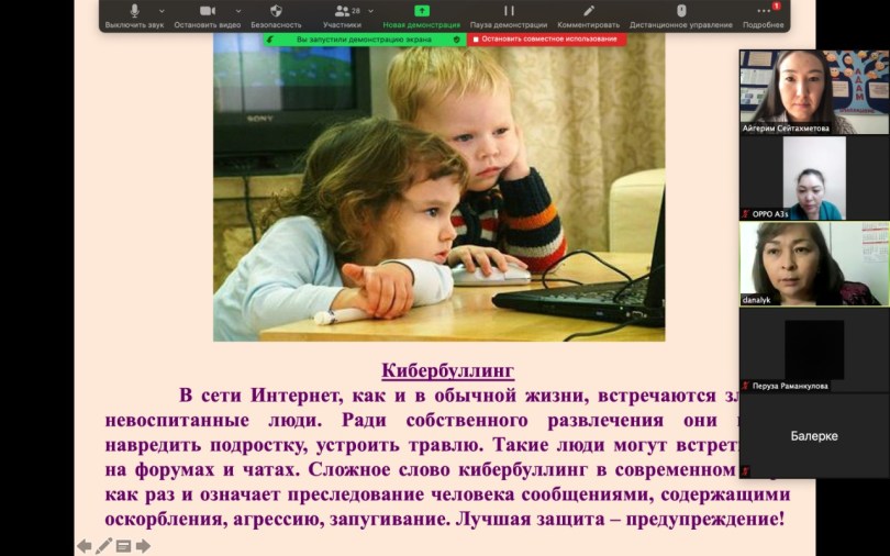 18.03.2021 года в колледже «Даналык» зам.директором по ВР Хатпиной Б.Ж., педагог-психологом Сейтахметовой А.С. и инспектором колледжа майор Берекетовой Р.Р. через платформу ZOOM было проведено родительское собрание по вопросам усиления родительского контроля за действиями детей в Интернете и в социальных сетях в рамках городской информационной компании «Скажи жизни ДА!».